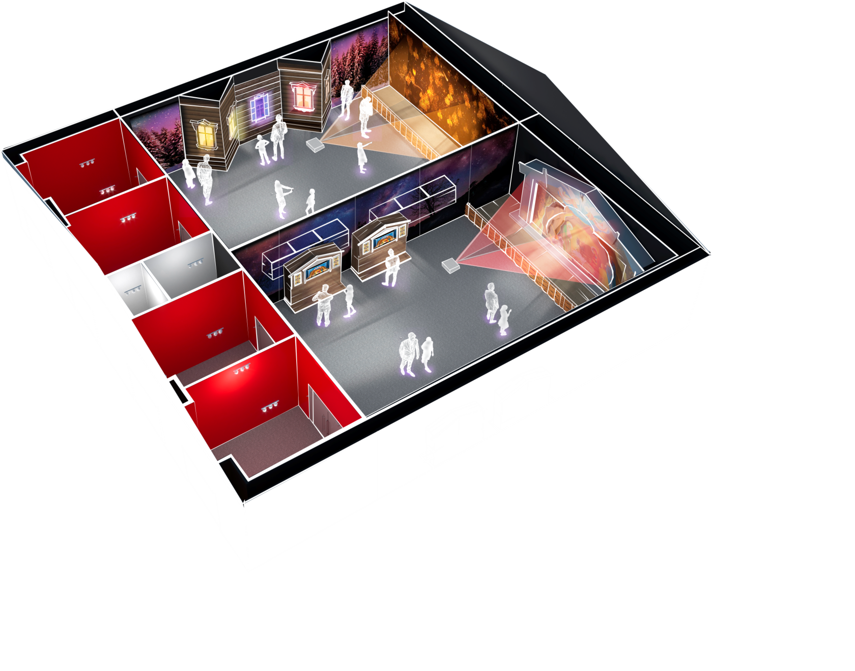 Мы создали смысловую и архитектурную концепцию выставки, придумали инсталляции и спроектировали технические сетапы, разработали контент, настроили и запустили оборудование.
