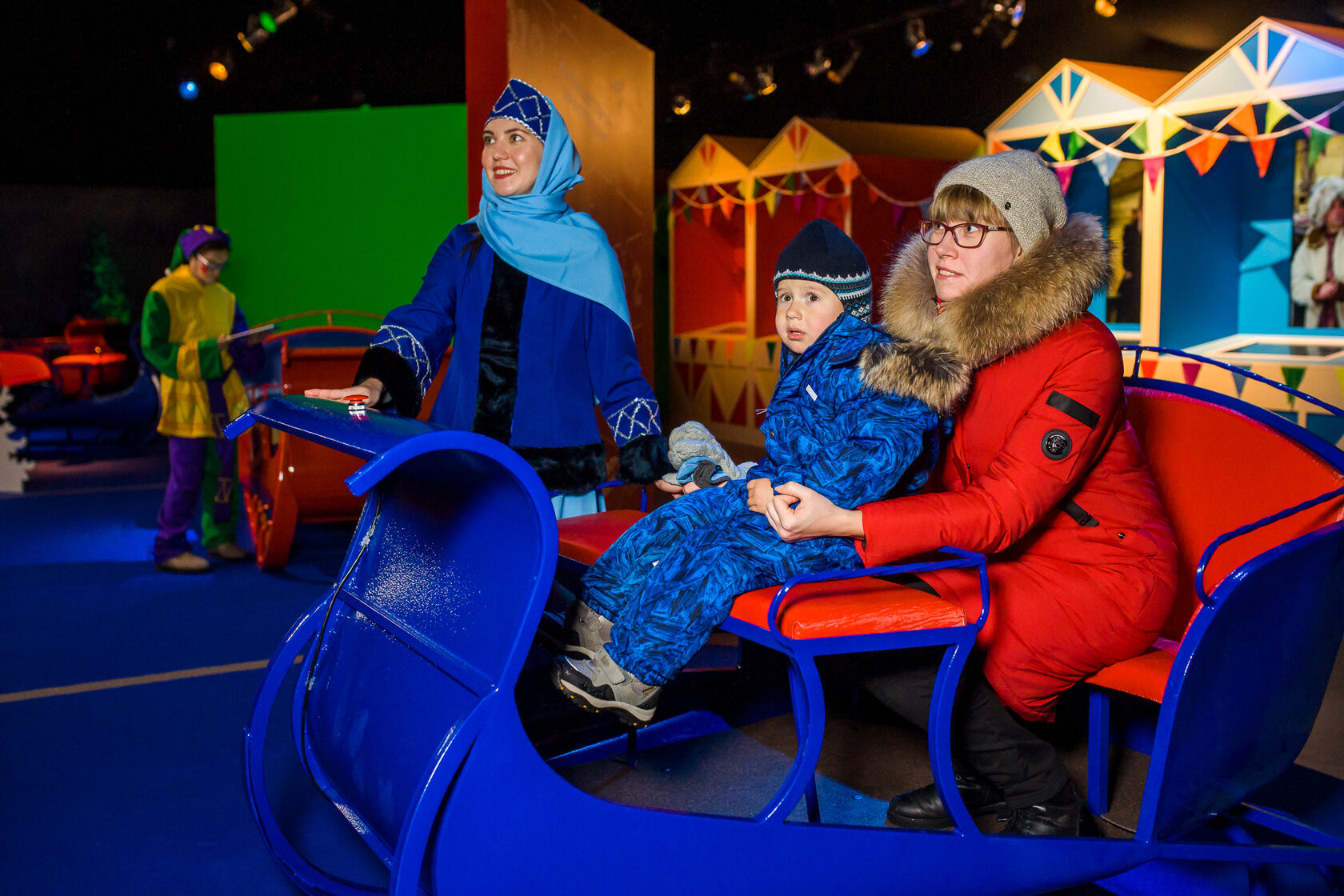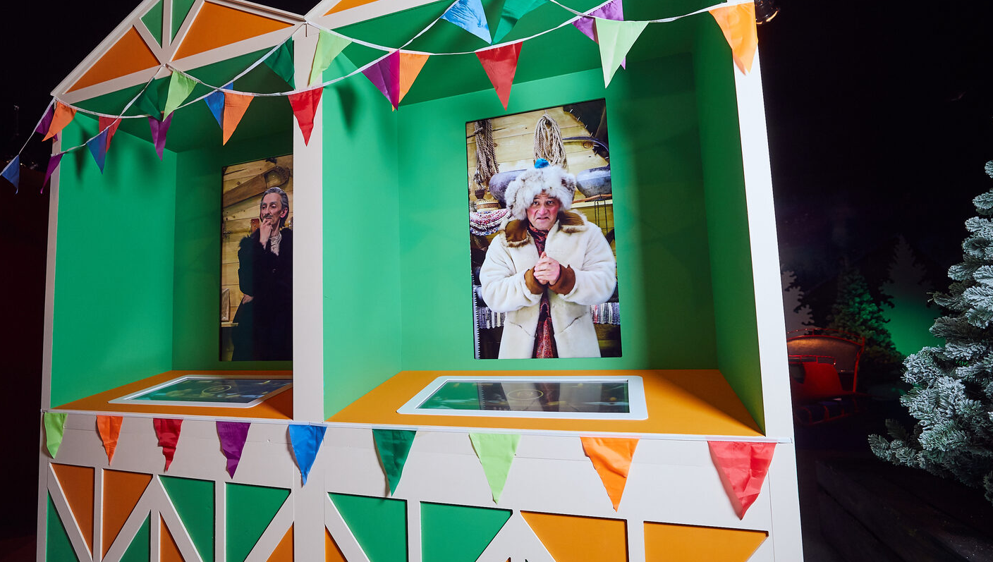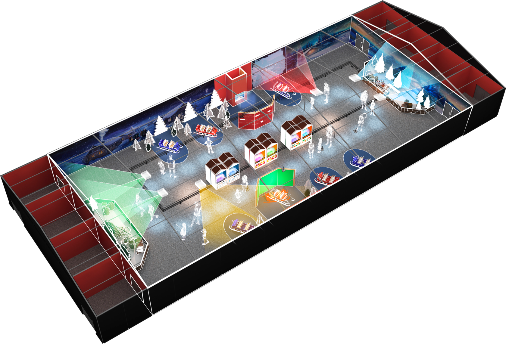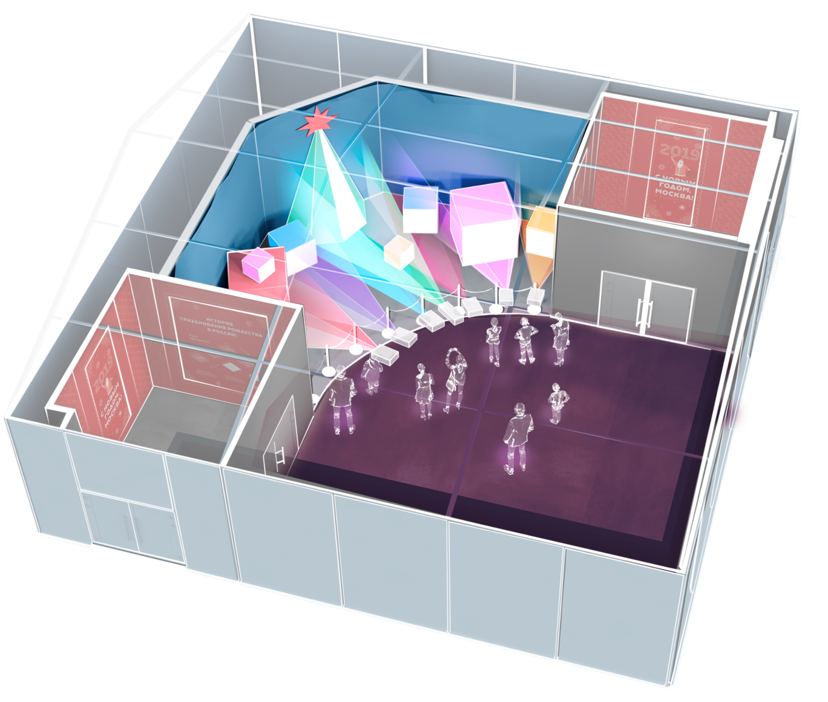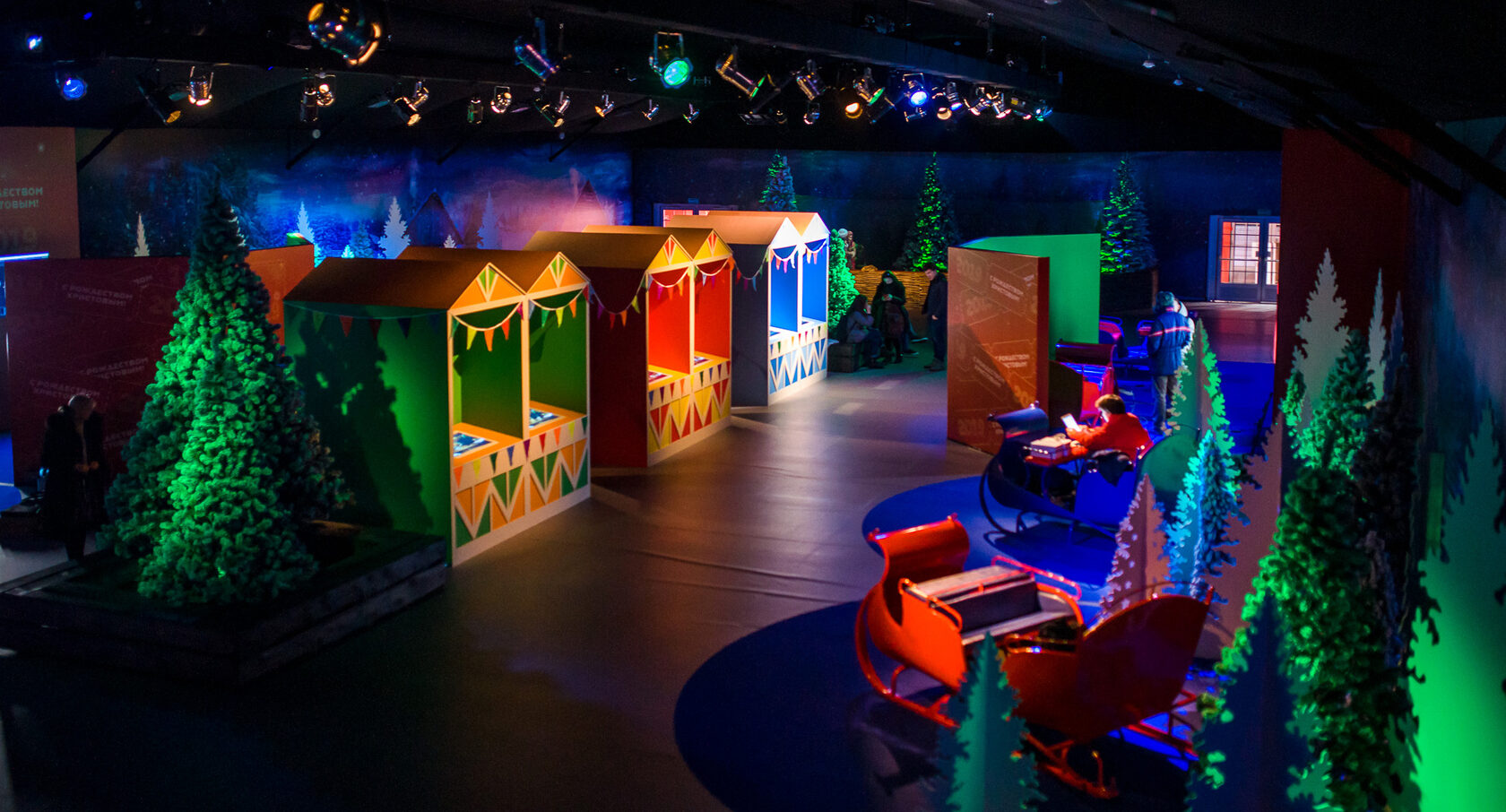 В павильоне была воссоздана атмосфера Рождественской ярмарки, где вместе с гостями присутствовали виртуальные коробейники и голографические ряженые, а по виртуальной трассе был проложен санный путь.