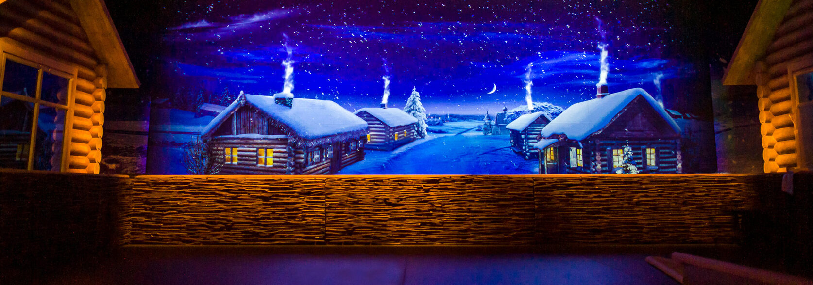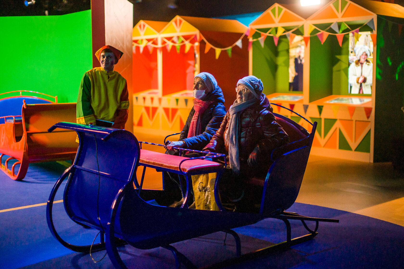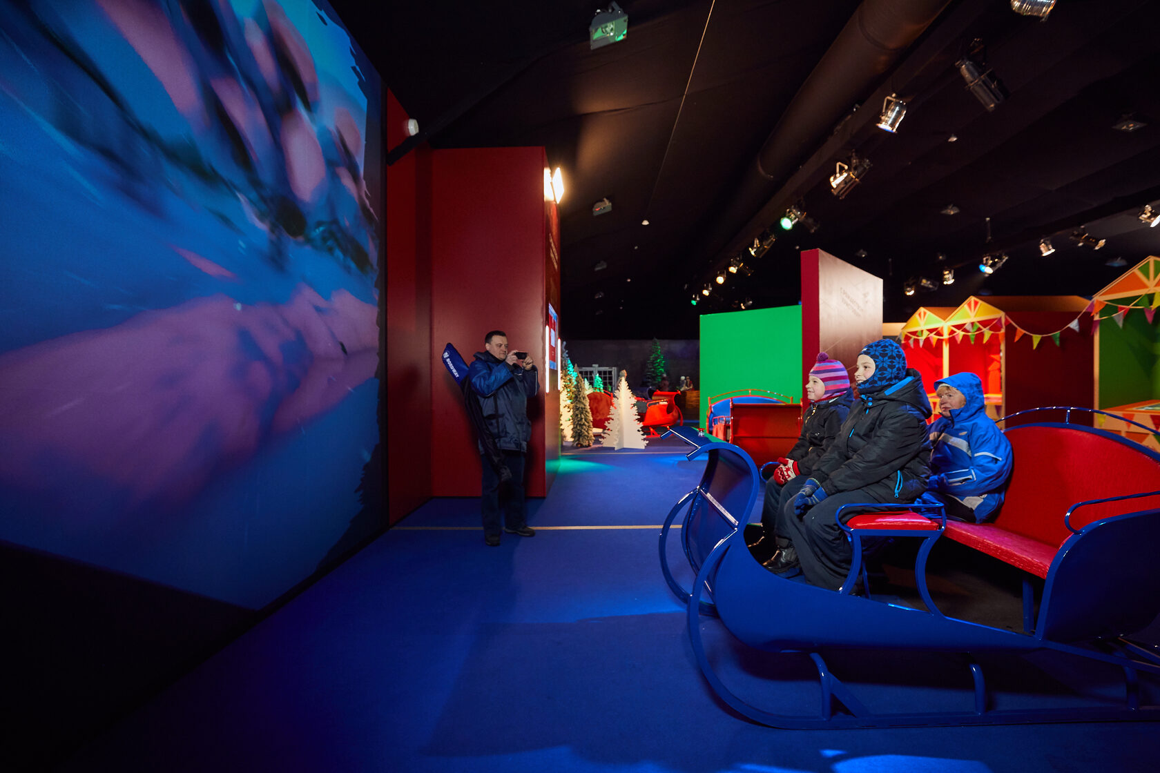 Мы разработали виртуальную прогулочную трассу и дополнили ее настоящими санями. Большой проекционный экран создавал ощущение реальной поездки на санях.