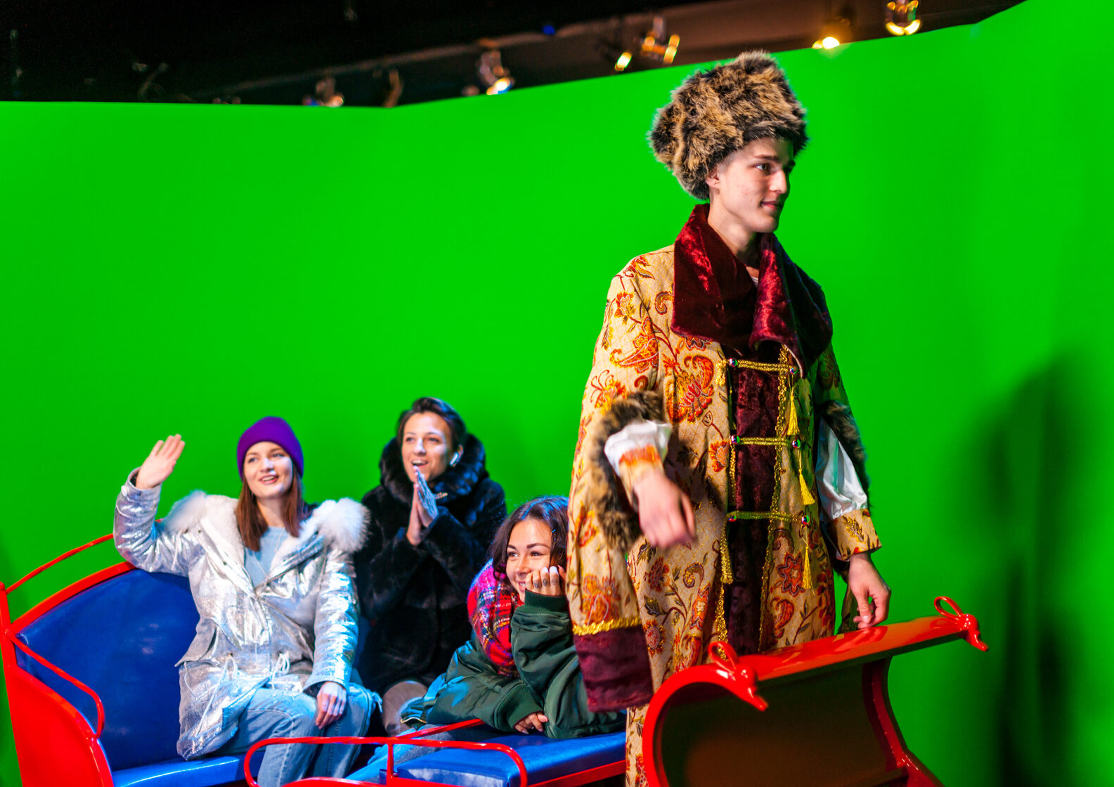Сувенир на память о выставке — анимированное фото с виртуальной прогулки. В фотозоне мы дополнили сани хромакеем. Гости в реальном времени видели трансформацию студии в рождественскую сценку, а видео отправлялось на e-mail. Короткий ролик подходит для публикации в социальных сетях.