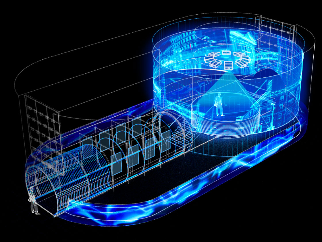 За основу концепции стенда мы взяли образ генератора энергии, «левитирующего» над выставочным пространством.